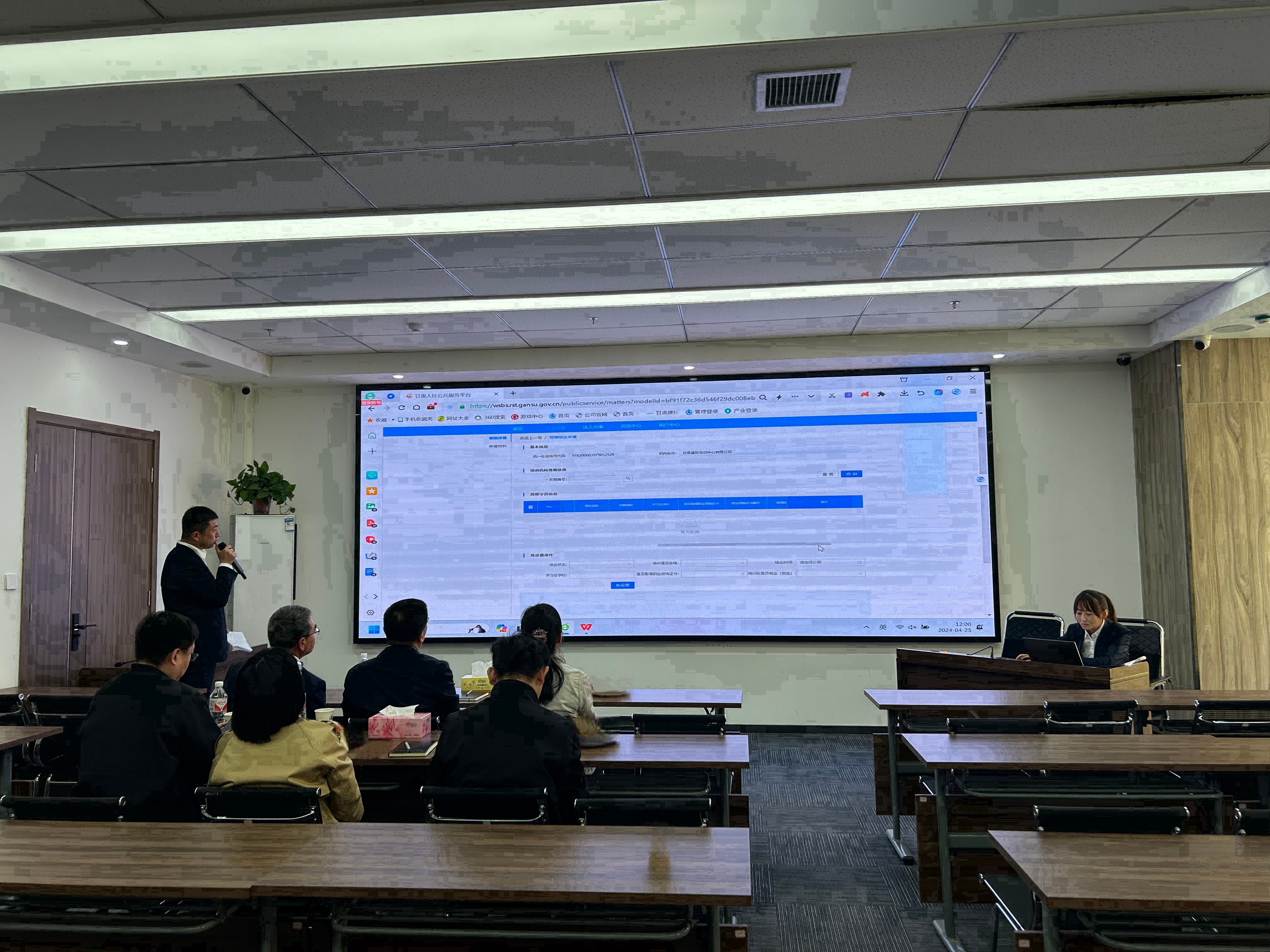 調(diào)研期間,甘肅建投培訓(xùn)中心工作人員向調(diào)研組介紹匯報(bào)了培訓(xùn)中心基本情況及積石山災(zāi)后重建技能培訓(xùn)情況,對(duì)大就業(yè)信息系統(tǒng)在培訓(xùn)機(jī)構(gòu)的實(shí)踐應(yīng)用進(jìn)行演示,同時(shí)對(duì)政府補(bǔ)貼性職業(yè)技能培訓(xùn)前期開班審核到培訓(xùn)完成后的補(bǔ)貼撥付全流程操作系統(tǒng)進(jìn)行逐步分解演示。最后,甘肅建投培訓(xùn)中心有限公司協(xié)助甘肅省人力資源和社會(huì)保障廳對(duì)監(jiān)管內(nèi)容進(jìn)行了演示。