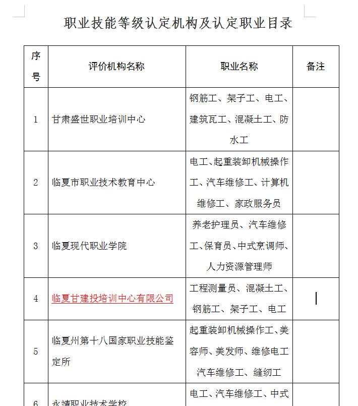 經(jīng)臨夏回族自治州人力資源與社會(huì)保障局組織專家評(píng)估,擬對(duì)臨夏甘建投培訓(xùn)中心有限公司等六家單位進(jìn)行備案,開展職業(yè)技能等級(jí)認(rèn)定工作,這是對(duì)甘肅建投培訓(xùn)中心有限公司職業(yè)技能等級(jí)認(rèn)定工作的肯定,也為公司開拓臨夏市場(chǎng)奠定了基礎(chǔ)。