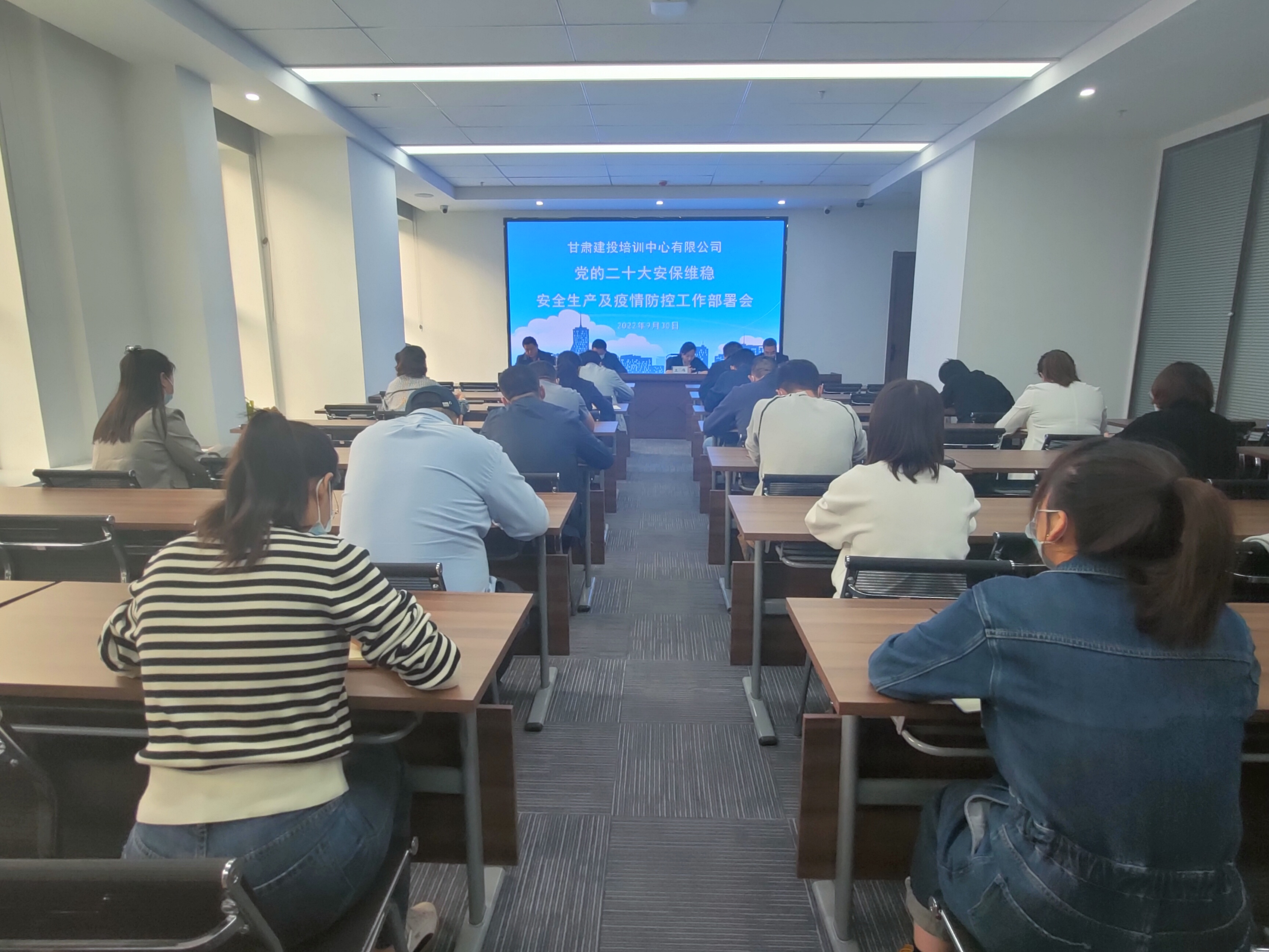 9月30日,甘肅建投培訓(xùn)中心有限公司組織召開黨的二十大維穩(wěn)安保工作專題會暨國慶節(jié)前安全生產(chǎn)、疫情防控專題部署會議。甘肅建投培訓(xùn)中心有限公司黨支部書記、總經(jīng)理衛(wèi)偉,副總經(jīng)理趙仕民,副總經(jīng)理王軍出席會議,公司全體職工參加會議。