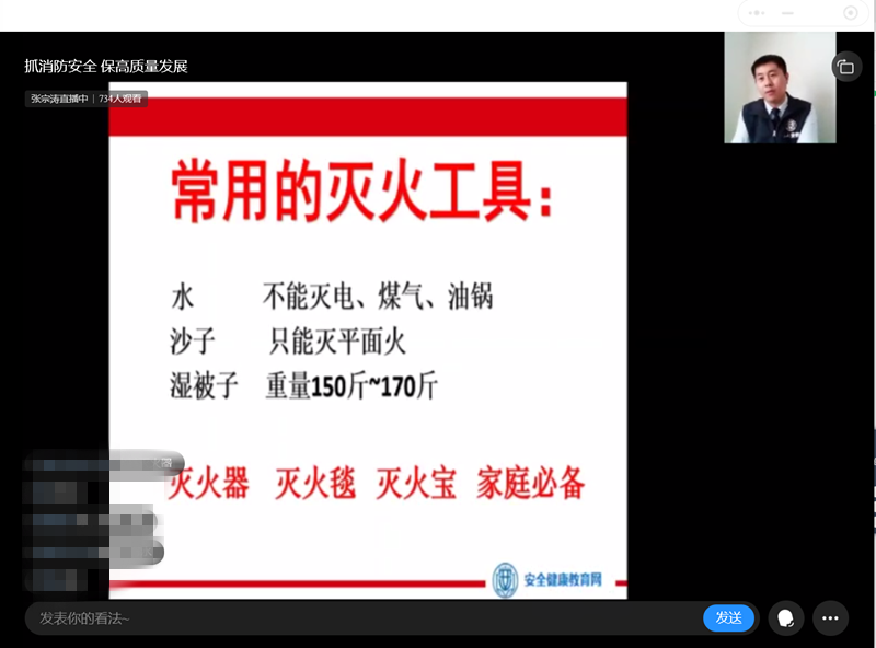 此次培訓(xùn)特邀安全健康教育網(wǎng)新疆、寧夏、陜西站優(yōu)秀講師張宗濤進(jìn)行授課,張老師從《新安法》的解讀和對企業(yè)的要求、疫情期間的注意事項、高層火災(zāi)的自救方式方法及電氣火災(zāi)的預(yù)防辦法四個方面內(nèi)容著手, 通過觸目驚心的圖片、視頻,一個個真實而又發(fā)人深省的案例,用“血的教訓(xùn)”警示職工高度重視消防安全,教育職工在單位及家庭無人時要關(guān)閉電源、燃?xì)獾仍O(shè)備,定期檢查消防設(shè)施,積極主動做好單位及家庭的消防安全工作。