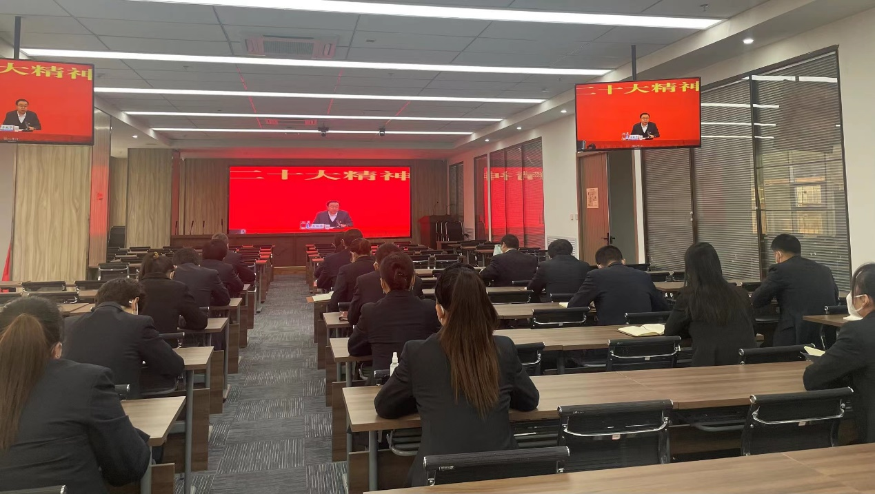12月8日,甘肅建投黨委理論學(xué)習(xí)中心組學(xué)習(xí)會議暨黨的二十大精神宣講報(bào)告會召開,甘肅建投培訓(xùn)中心有限公司設(shè)分會場,黨支部書記、總經(jīng)理衛(wèi)偉帶領(lǐng)全體職工收聽收看。報(bào)告會由甘肅建投黨委書記、董事長蘇躍華宣講,甘肅建投黨委副書記、總經(jīng)理束水龍主持。